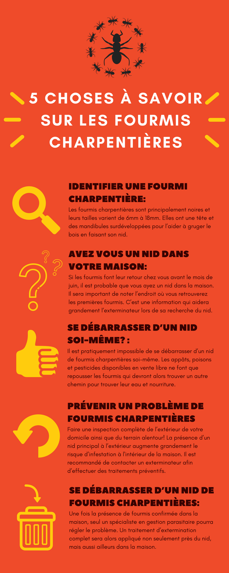 Si vous croyez être victime d’une infestation de fourmis charpentières, il est préférable de contacter un exterminateur dans les plus brefs délais.