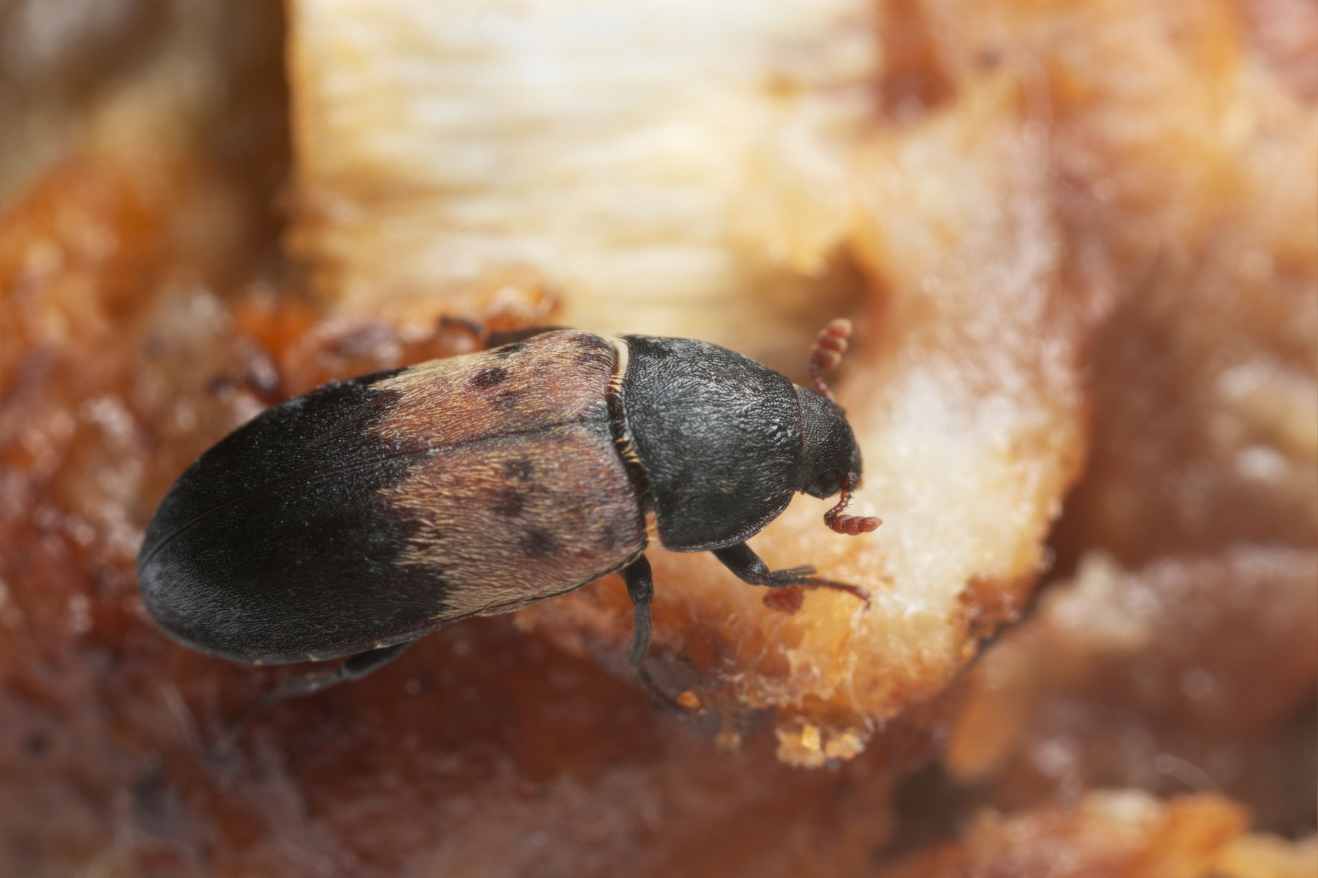 Les dermestes, sont de petits insectes que l'on trouve couramment dans les maisons et les bâtiments. Ils sont connus pour leurs corps distinctifs de forme ronde ou ovale, qui sont couverts de poils et d'écailles denses.